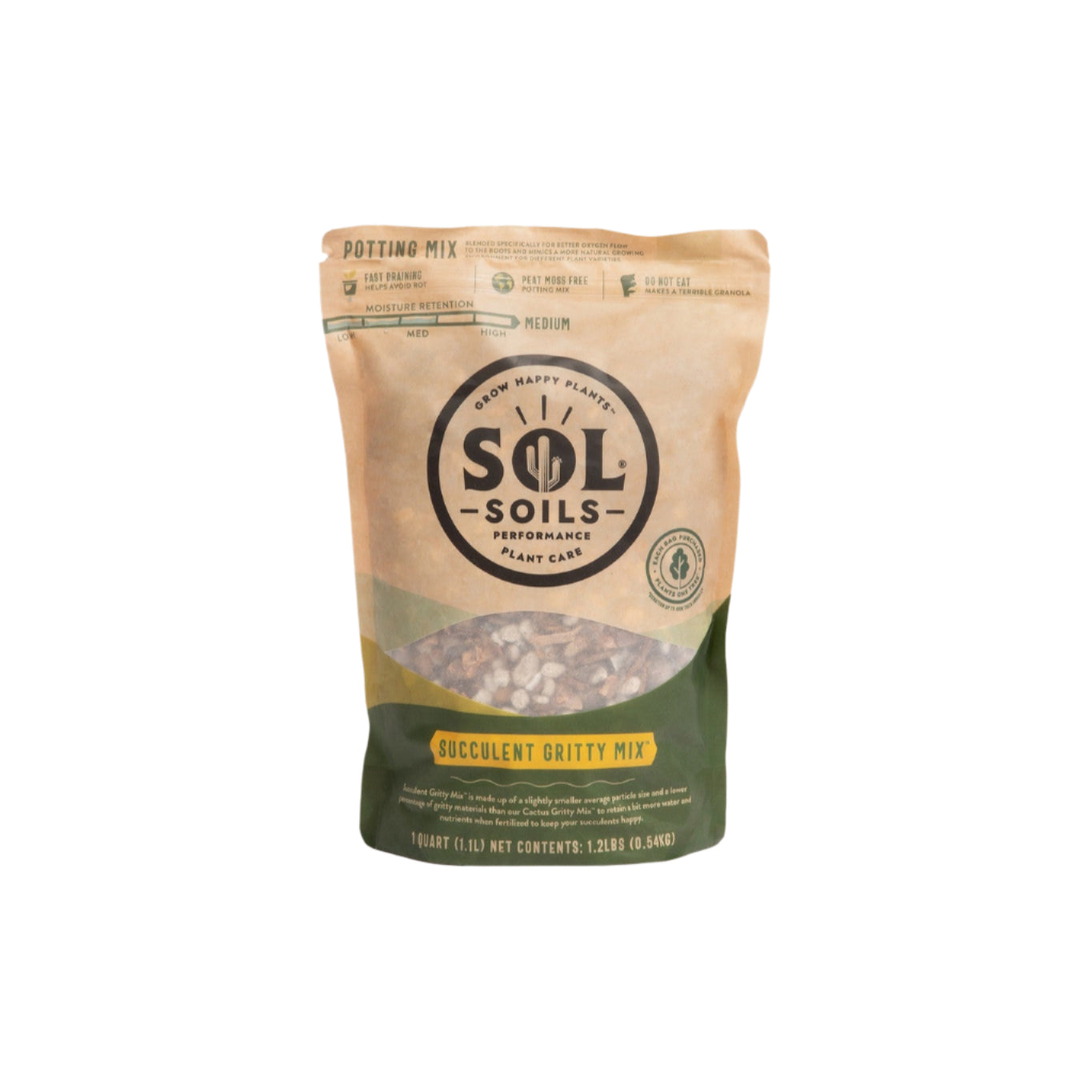 Succulent Gritty Mix is ideal for a wide variety of succulents and other dry-weather plants. It contains more organic matter and retains more moisture/nutrients than our cactus soil.